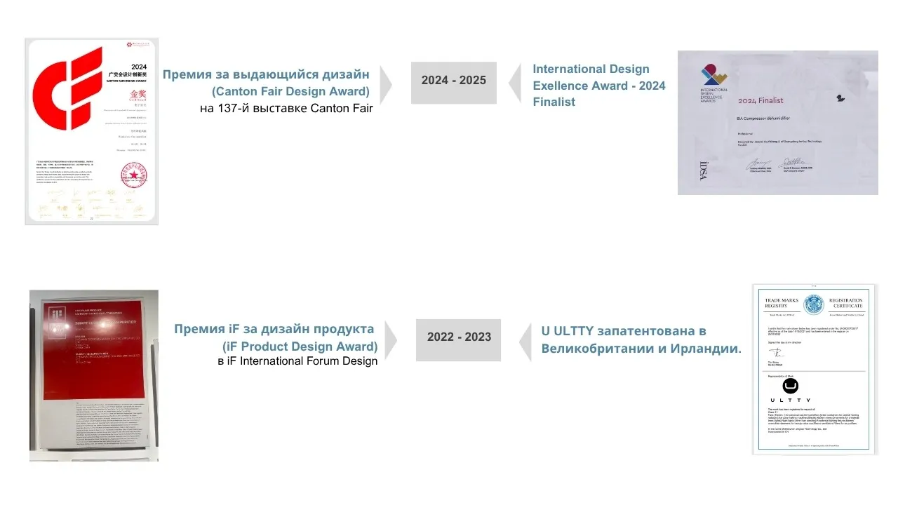 Высокое качество и "High-end fashion" дизайн ULTTY были признаны на престижных международных форумах. Наши продукты не только защищены с точки зрения промышленного образца, но и получили множество авторитетных дизайнерских наград: